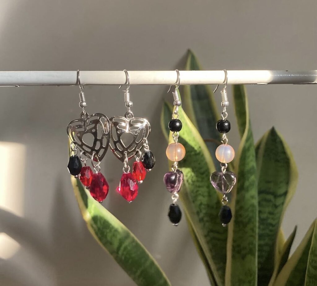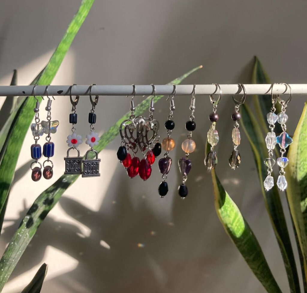 Each pair of earrings has its own mood. The bold red ones bring confidence, the deep blue ones feel calm, the golden tones give warmth, and the crystal drops shine softly in the light.
